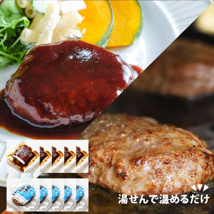 【12/20-25限定★揚げてるミンチカツ1つプレゼント】挽肉と藻塩ハンバーグ合計10個(プレーン5個、デミグラス5個)湯せんで温めるだけの簡単調理