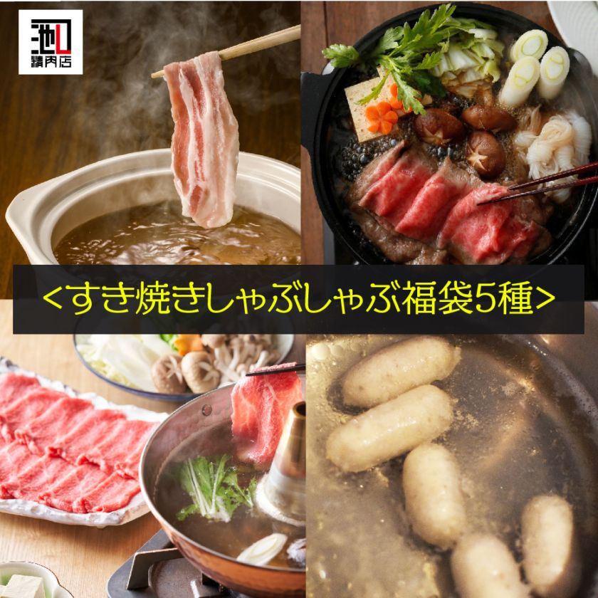 (12-1月限定福袋)“和牛すきやきしゃぶしゃぶ5種”(1和牛肩ロース 2豚ロース 3和牛モモ4豚バラ 5ミニ生ソーセージ(ビア)) ネット限定福袋