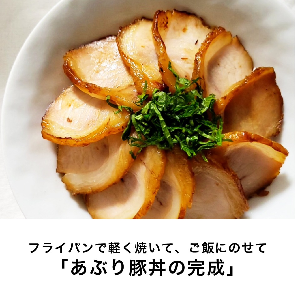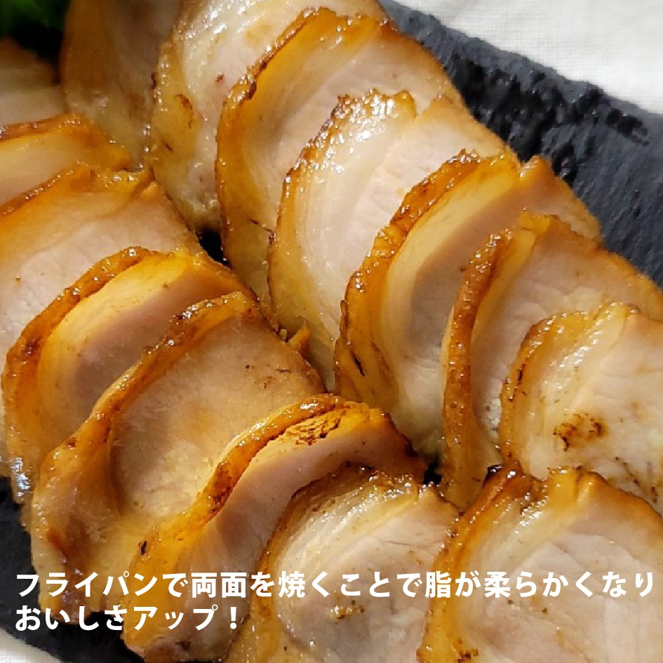 解凍後スライスして冷たい焼豚を、フライパンで両面焼いて熱々のおいしさをお楽しみください。贈り物にも人気商品です。