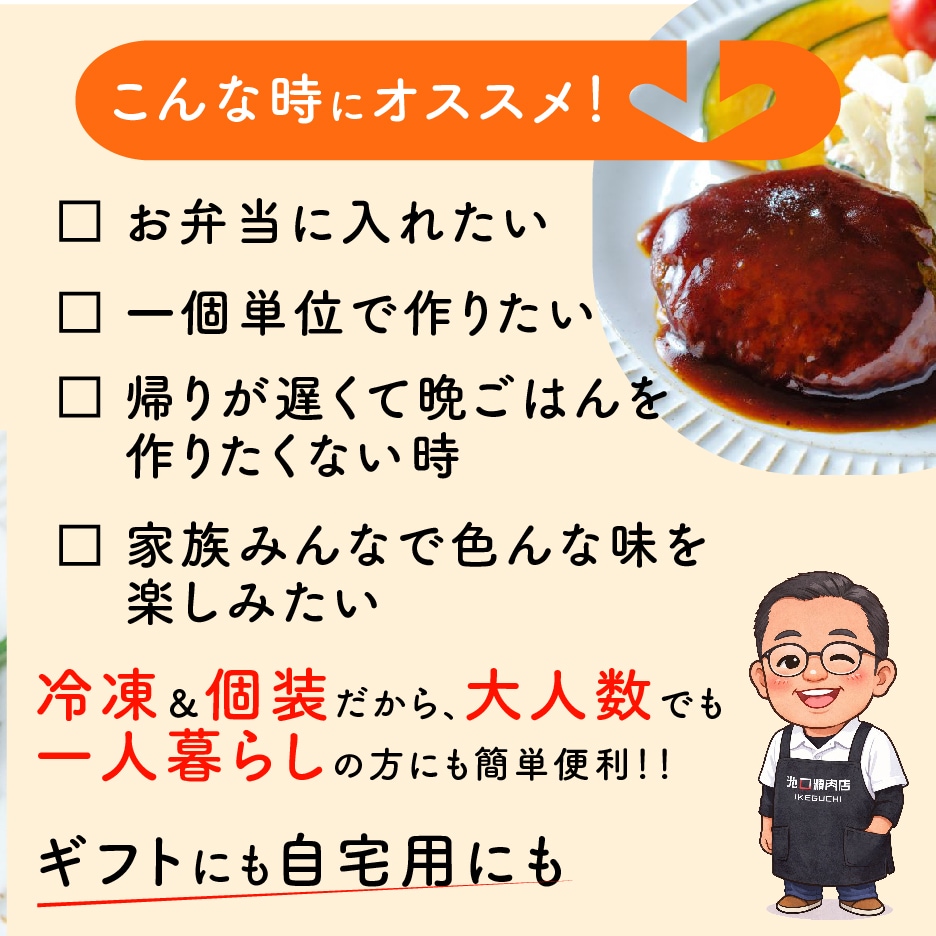 【デミグラス】和牛(国産)、豚肉(国産)、ハンバーグソースデミグラス(水飴(国内製造)、デミグラスソース、植物油、ワイン、たまねぎエキス、トマトペースト、食塩、ビーフエキス、ブラウンルー、味噌、酵母エキス、コショウ末、香辛料)、玉ねぎ(国産)、挽肉用調味料(水飴(国内製造)、砂糖、醸造酢、ビーフエキス、食塩、酵母エキス、コショウ末、オニオンパウダー、ポークエキス、玉ねぎエキス)、小麦粉加工品、魚醤、藻塩(海水(瀬戸内海)、海藻)、ナツメグパウダー/ソルビット、糊料(加工澱粉、キサンタン)、着色料(カラメル)、調味料(核酸等)、酸味料、乳化剤、V.B1、酸化防止剤(V.C)【和風オニオン】和牛(国産)、豚肉(国産)、ハンバーグソース和風オニオン(玉ねぎ(国産、中国)、醤油、醸造酢(米酢、りんご酢)、味醂、砂糖、たまねぎエキス、おろしにんにく、おろし生姜、食塩)、玉ねぎ(国産)、挽肉用調味料(水飴(国内製造)、砂糖、醸造酢、ビーフエキス、食塩、酵母エキス、コショウ末、オニオンパウダー、ポークエキス、玉ねぎエキス)、小麦粉加工品、魚醤、藻塩(海水(瀬戸内海)、海藻)、ナツメグパウダー/糊料(加工澱粉、増粘多糖類)、調味料(核酸等)、乳化剤、酸化防止剤(V.C)【プレーン(焼き・生)】