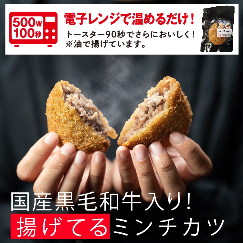 大人気商品!黒毛和牛と国産豚を使用したミンチカツを、揚げて急速冷凍!
