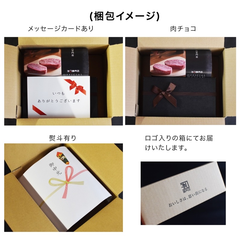 専用ギフトケースに入っており、お肉の説明もおつけいたします。